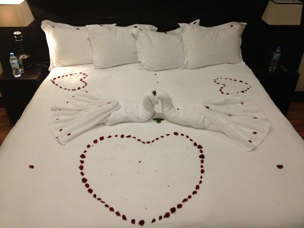 Her var dem klar over at vi er på bryllupsreise, for se det koselige rommet vårt. Champagne sto det også og ventet på oss! 🙂
