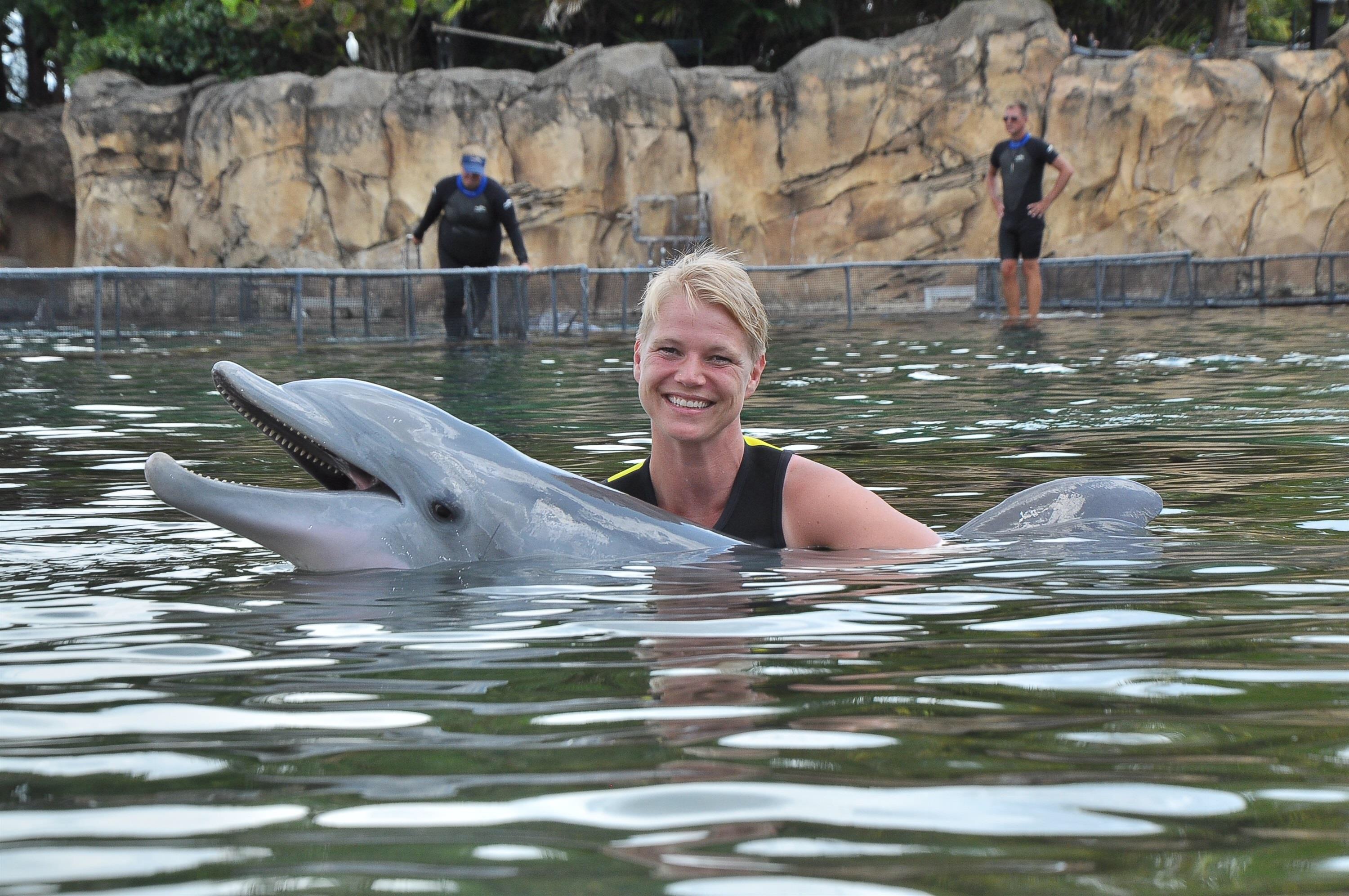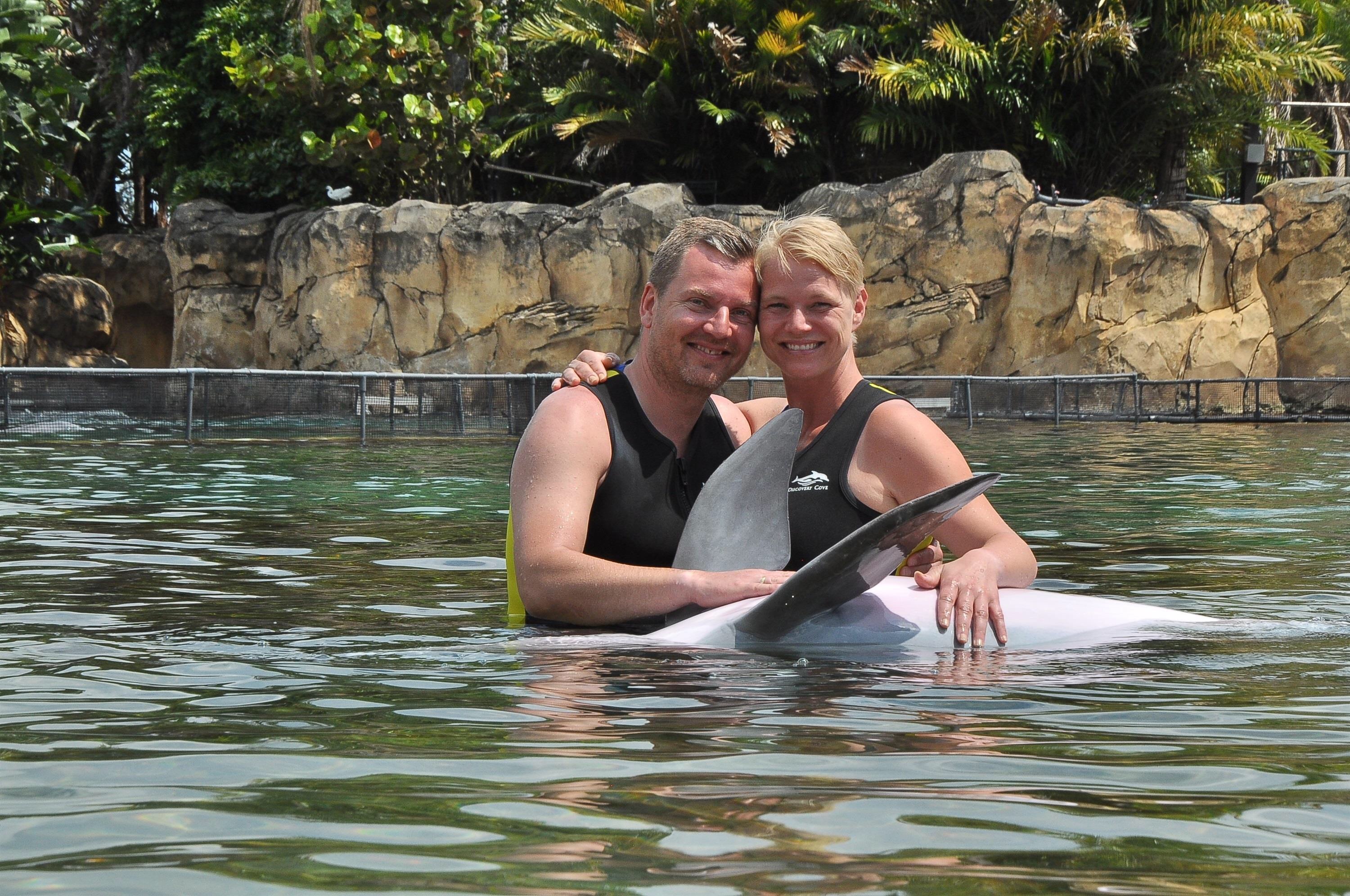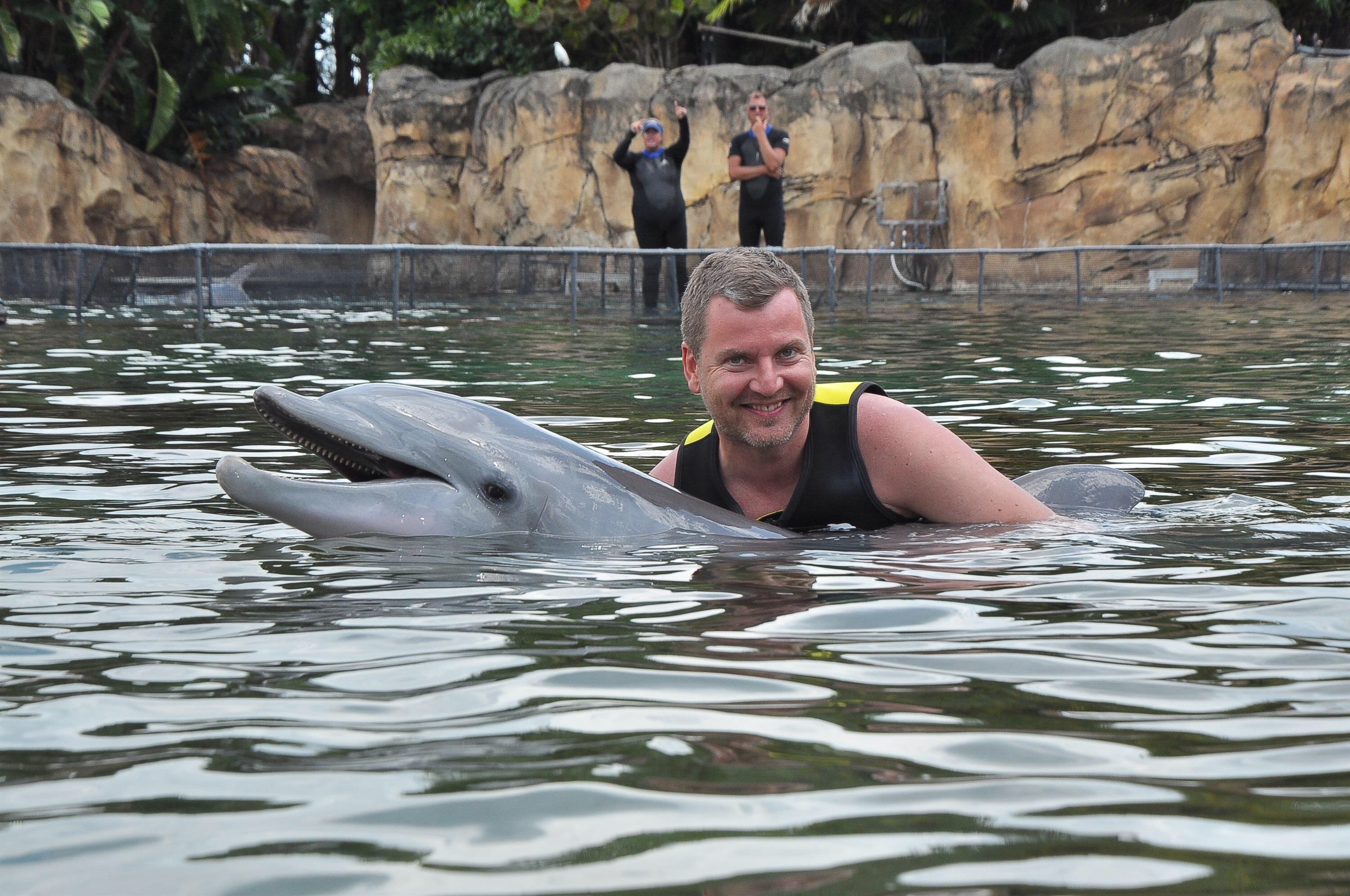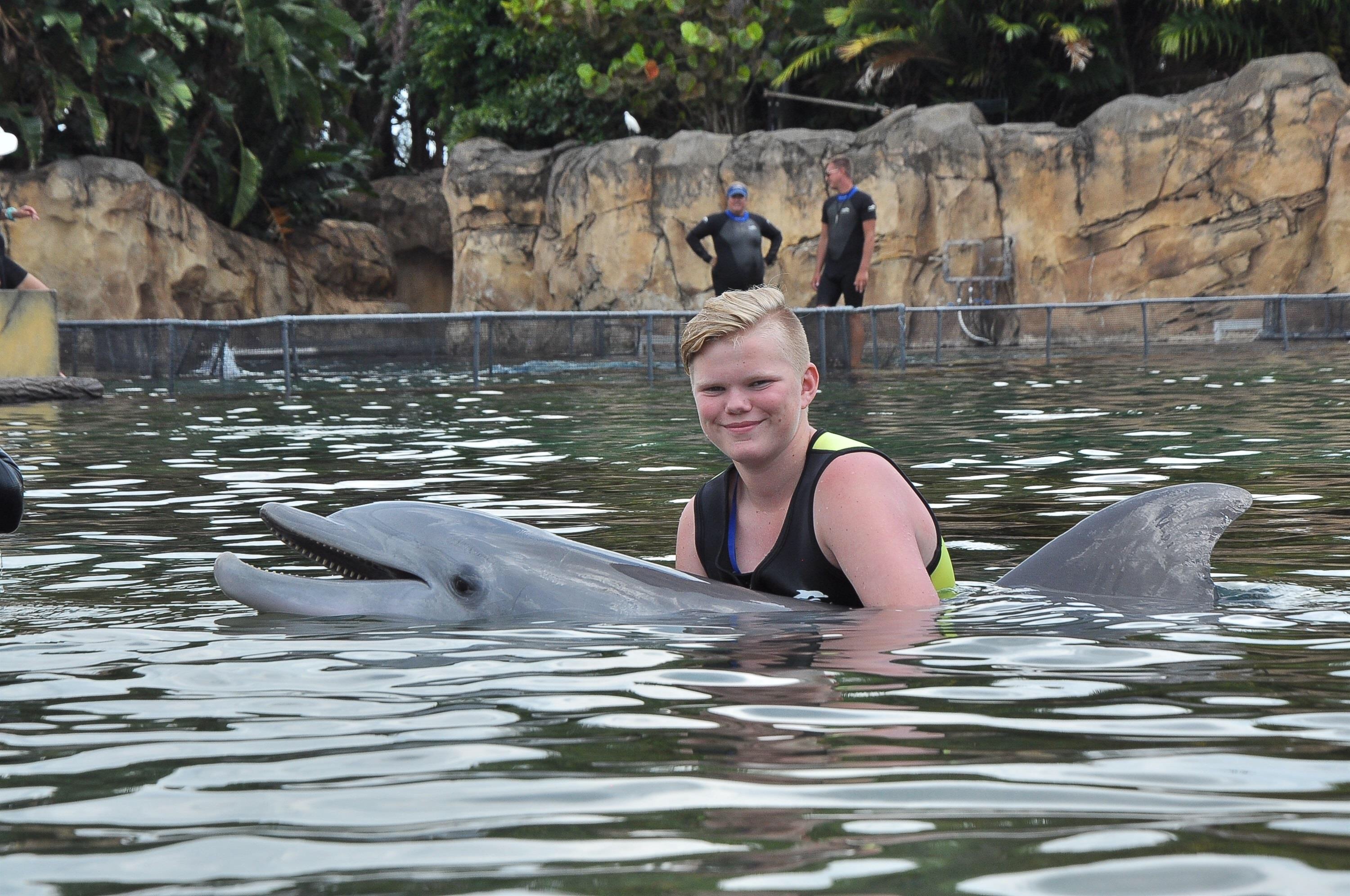 Torsdag og vi skal i Discovery Cove for å leke oss med Delfinene.