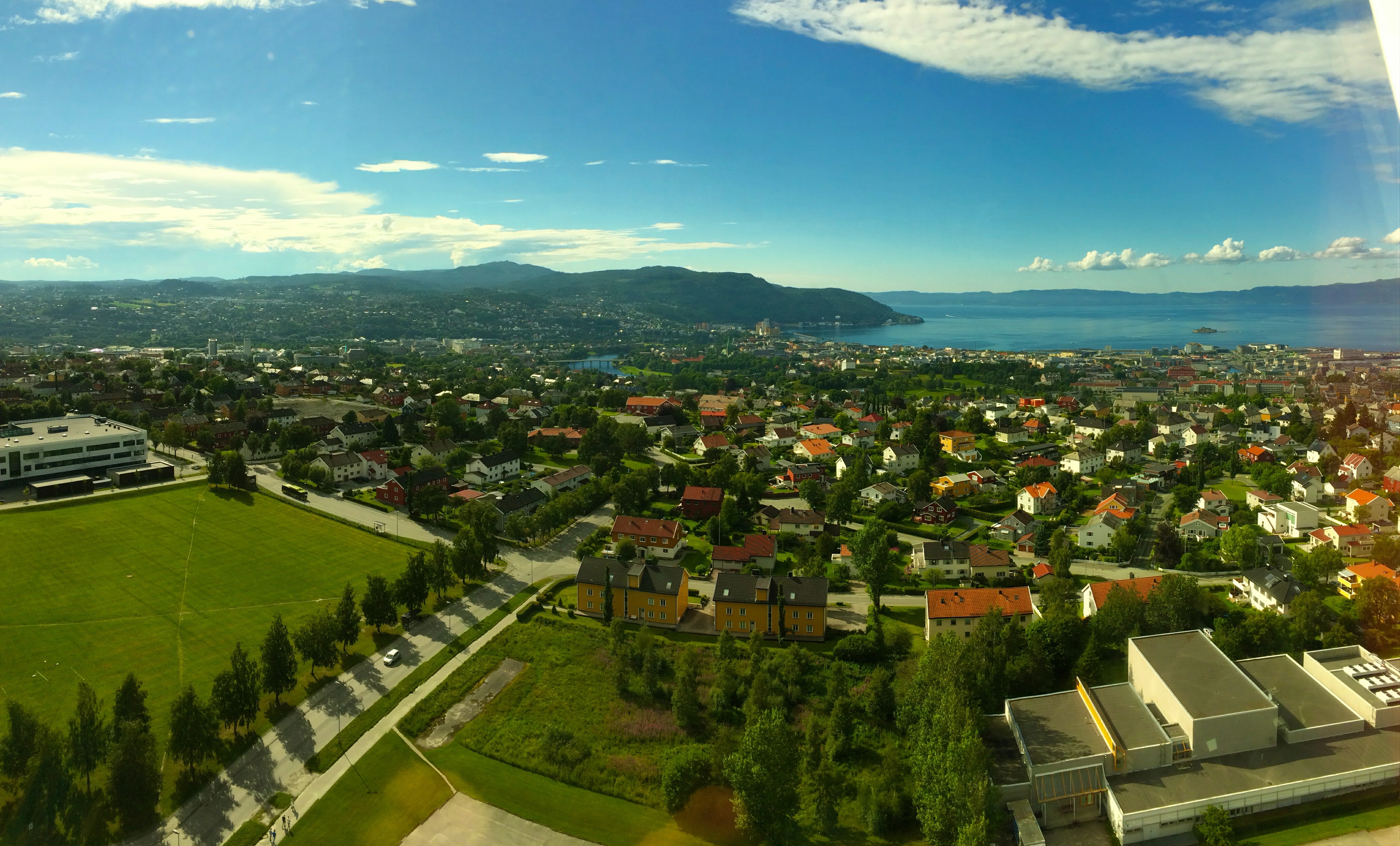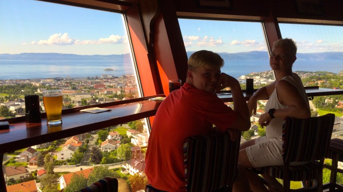 Etter vår kirkelige befaring fikk vi lyst til å se utsikten over Trondheim fra Tyholttårnet, så vi heiv oss i en Taxi og dro til Tyholt.