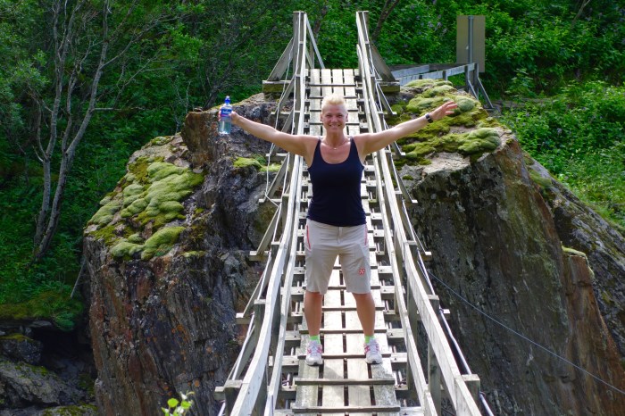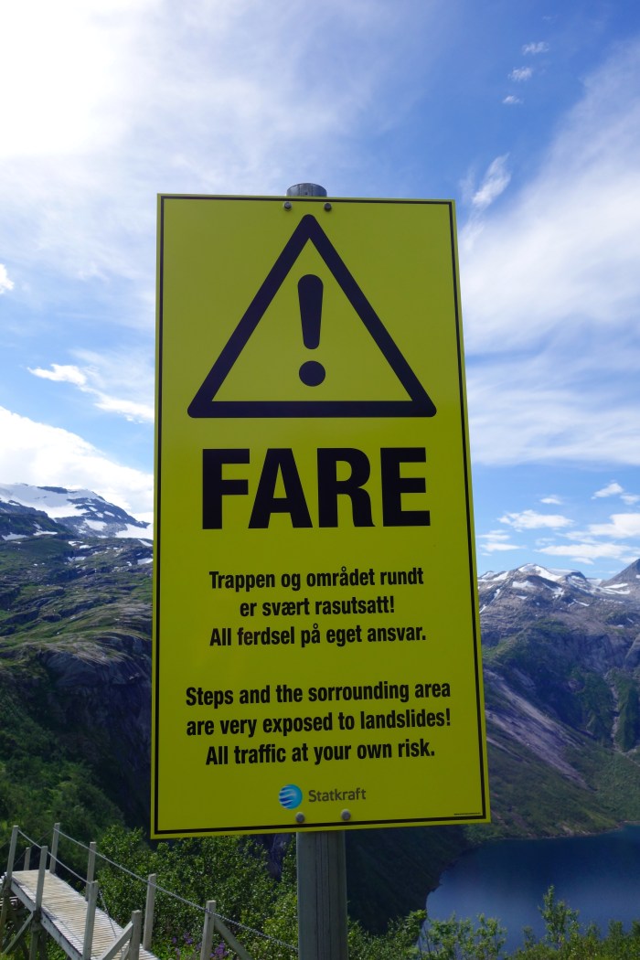 Det så litt stygt ut i starten, da de første trappene nesten er skrudd utenpå fjellet. Ingen høydare for Fru Bergs høydeskrekk. Men viljen til å klare det var høyere enn skrekken, så vi kjørte på.