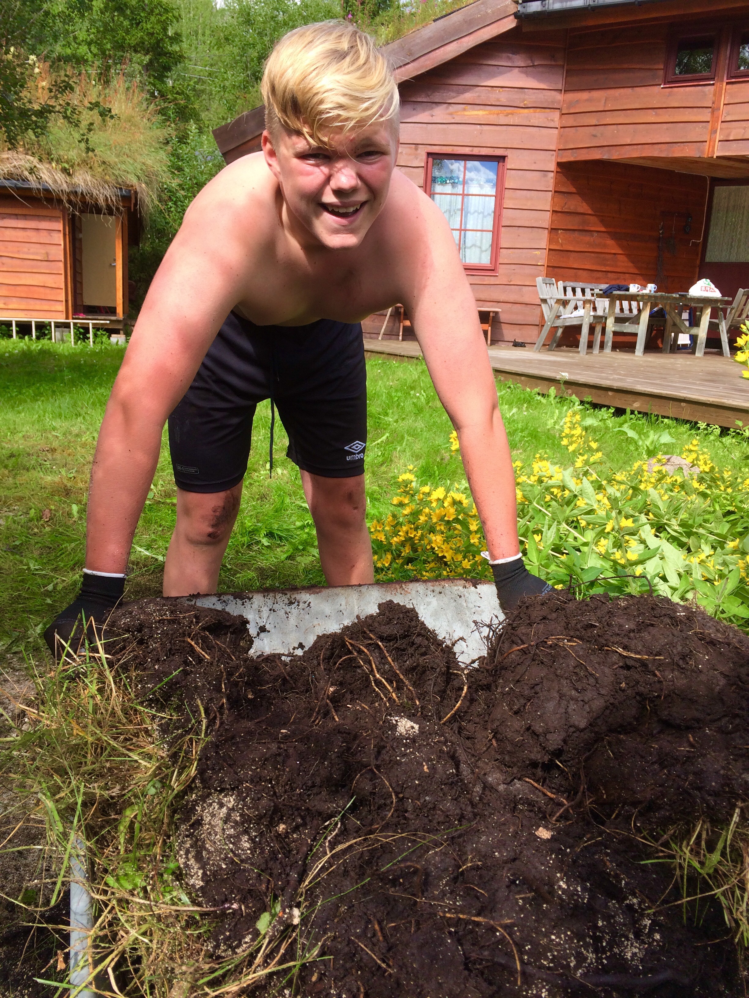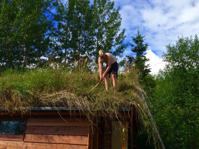 Resten av formiddagen har blitt brukt ute til å klippe gress, klippe torvtak, rydde rundt hytta ja generelt fikse opp.