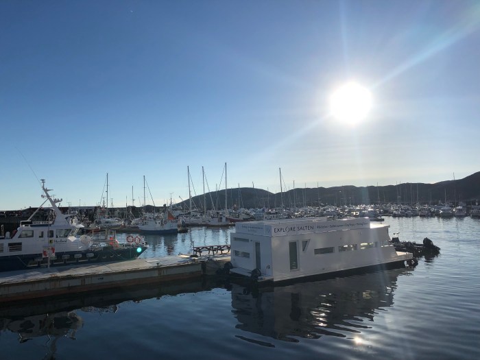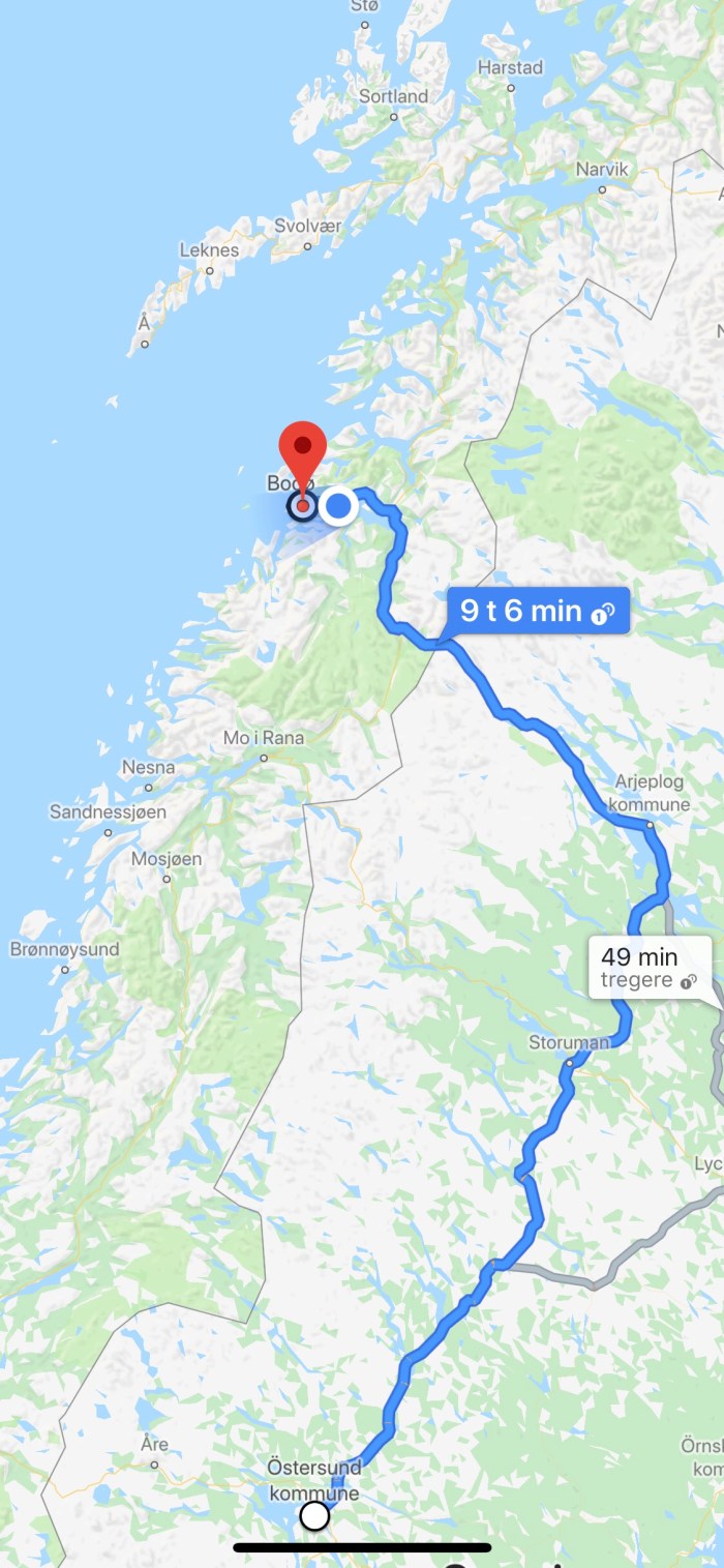 Etter 1423 kilometer er vi fremme i Bodø i et fantastisk vær. Og ikke nok med det men 19:00 er det 22°.