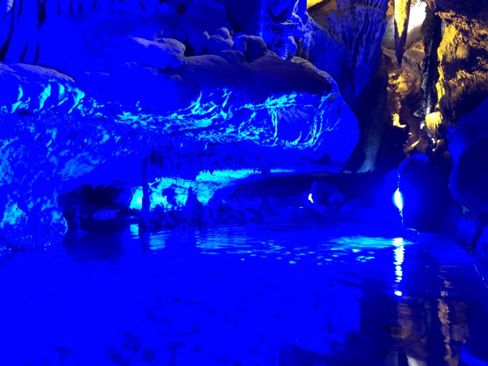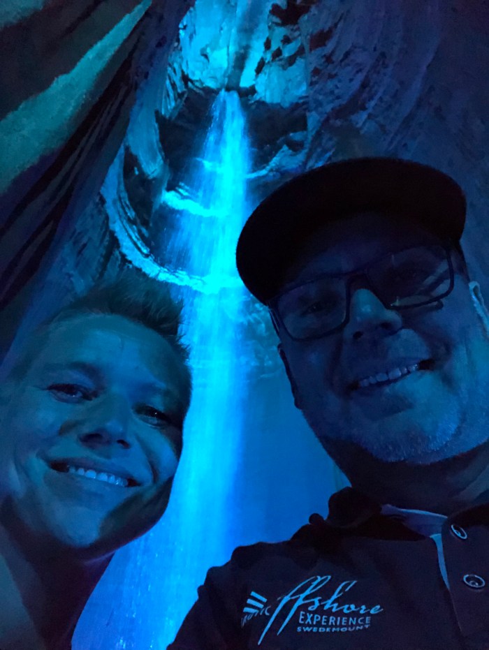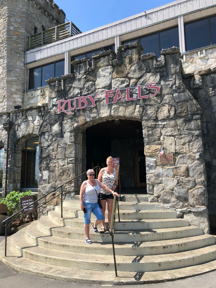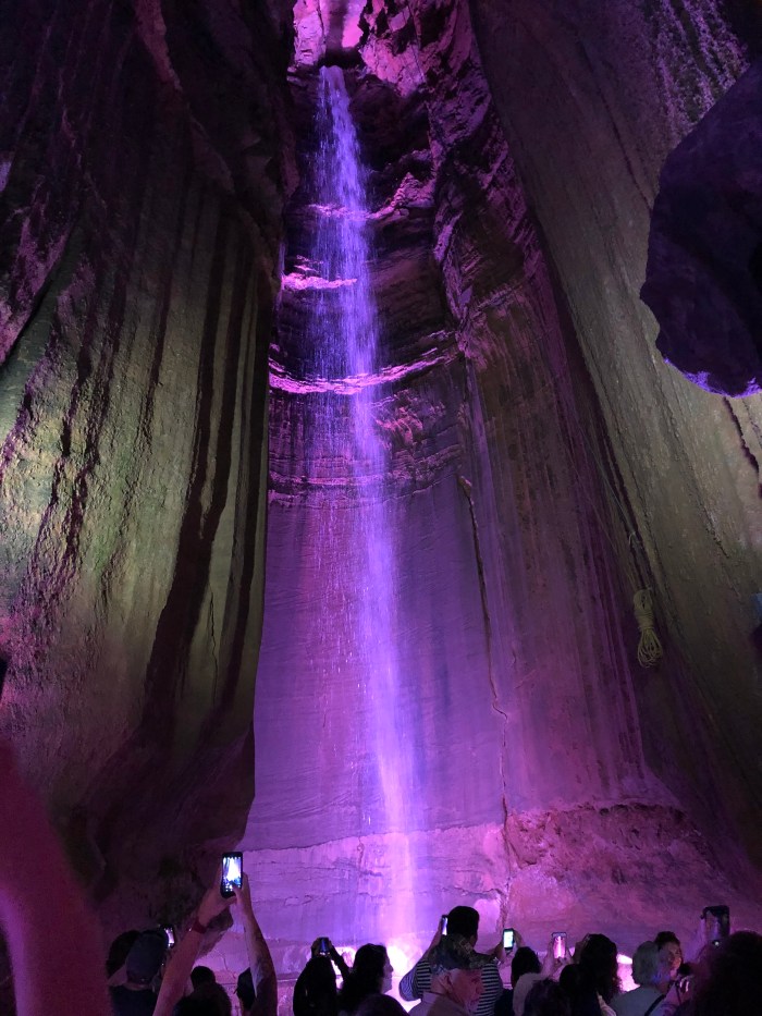 Ruby Falls som vi besøker først, består av et fantastisk grotte-system som fører oss 800 meter inn i fjellet til USAs høyeste og dypeste underjordiske fossefall. På veien inn passerer vi utrolige stalaktitter og stalagmitter. Forskjellen på de to er om dem vokser fra taket (stalaktitter) eller fra bakken (stalagmitter). Fossefallet var lyssatt i forskjellige farger og var et utrolig fint skue! 😁