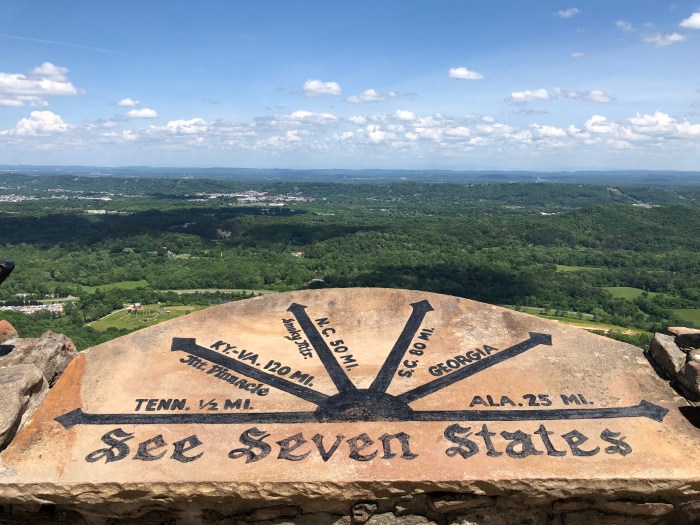 Neste stopp ble Rock City som er en botanisk hage i veldig spesielle steinformasjoner. Halvveis på turen kom vi til et utkikkspunkt med utsikt til syv stater.